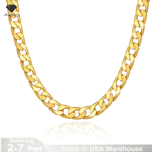 6-12mm Cuban 18K Gold Plated Necklace Jewelry
