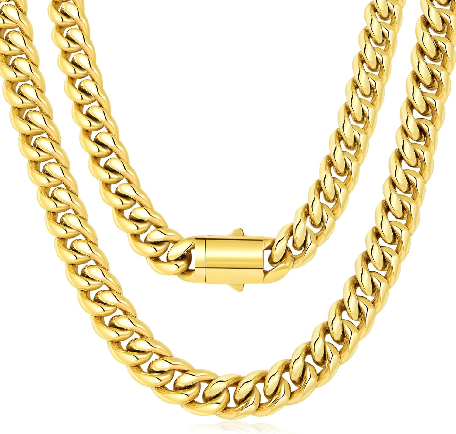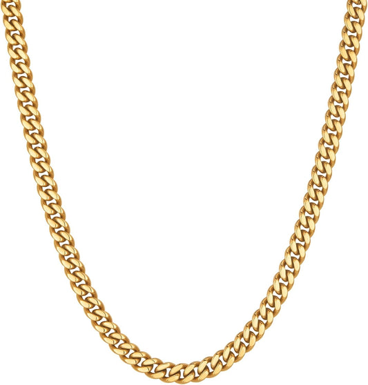 18K Gold Filled Cuban Link Chain Stainless Steel | Waterproof Miami Cuban Necklace with Box