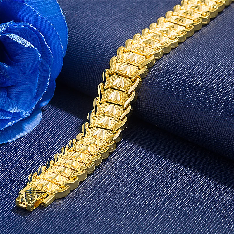21cm Retro Fashion European Coin Gold-plated Jewelry Copper Plating 24K Gold Men's Wide Version Bracelet Watch Chain Wholesale
