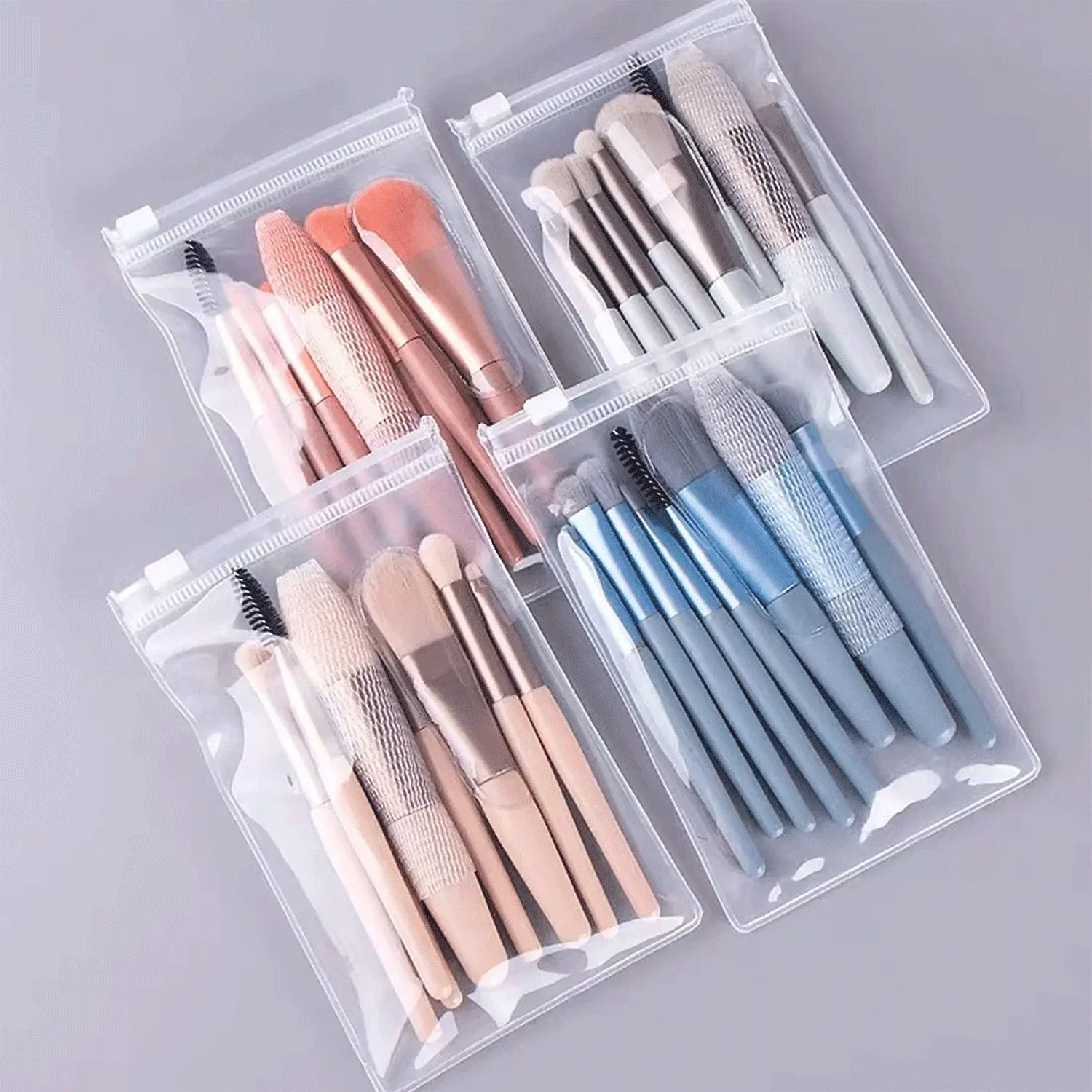 "Upgrade your travel essentials with this compact 8-piece brush set featuring four vibrant shades. Crafted with soft, hypoallergenic bristles that feel like silk on skin—perfect for precise eye shading, fluffy blush application, and flawless foundation blending. Whether you're jet-setting or catching up on beauty prep, this pocket-sized toolkit ensures you look polished everywhere you go.