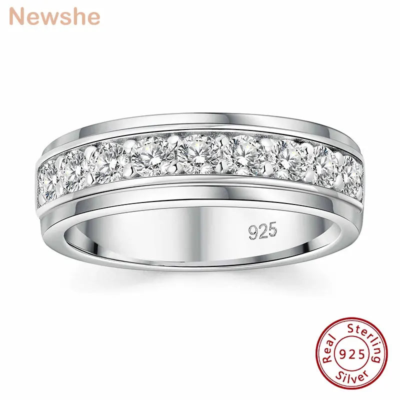 1pc White AAAAA Cz 925 Sterling Silver Round Cut Engagement Wedding Ring for Men
