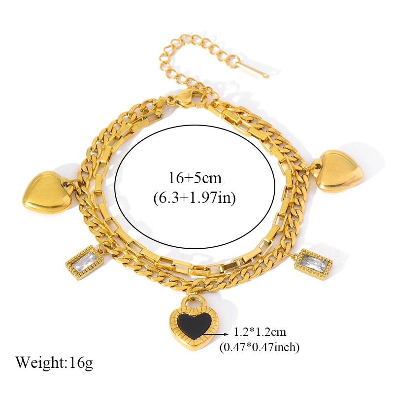Heart Love Charm 18K Gold Plated Waterproof Bracelet
