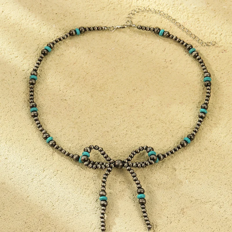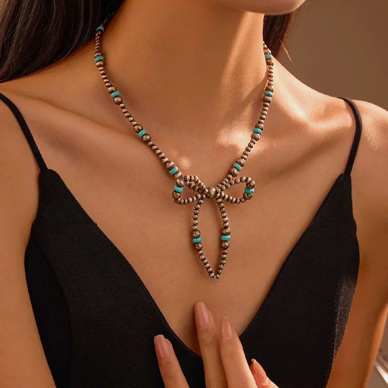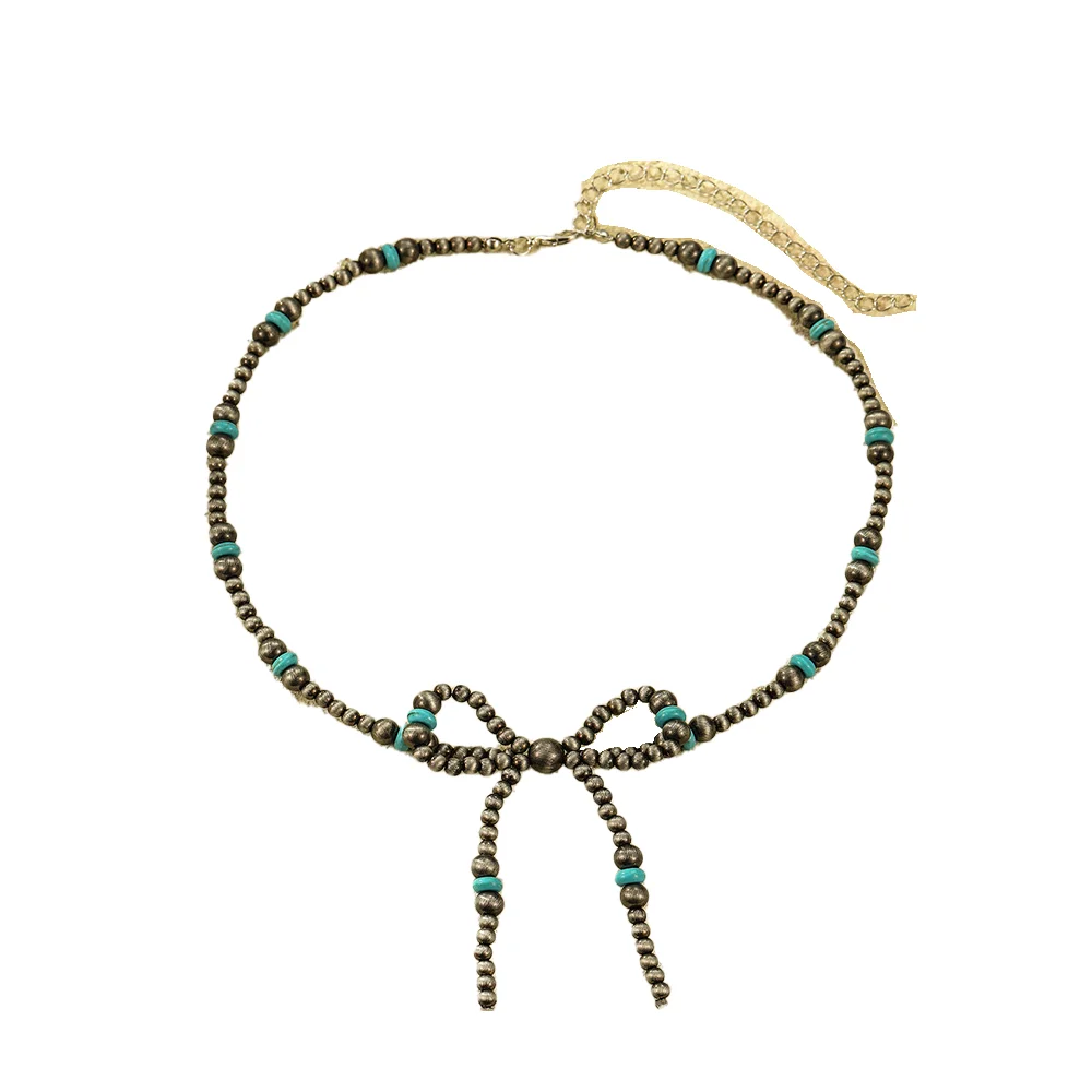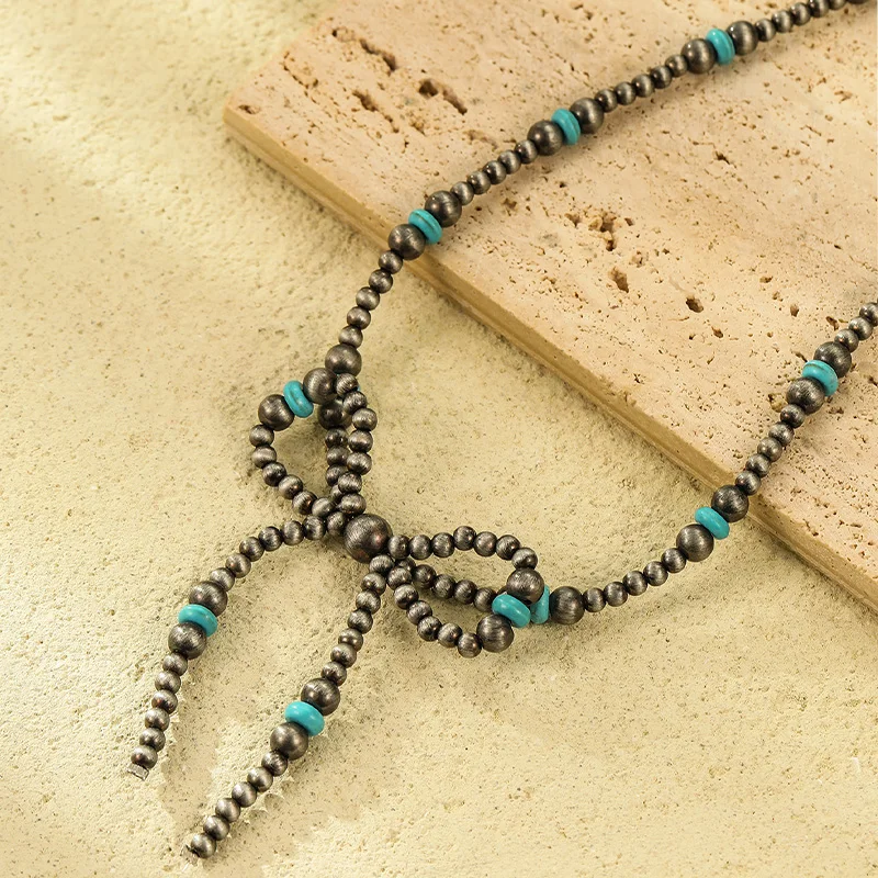 Turquoise Pearl Denim Style Necklace