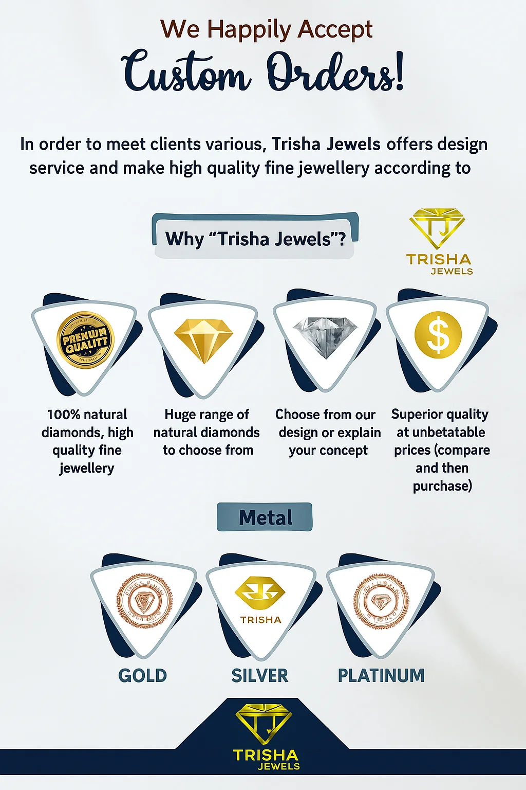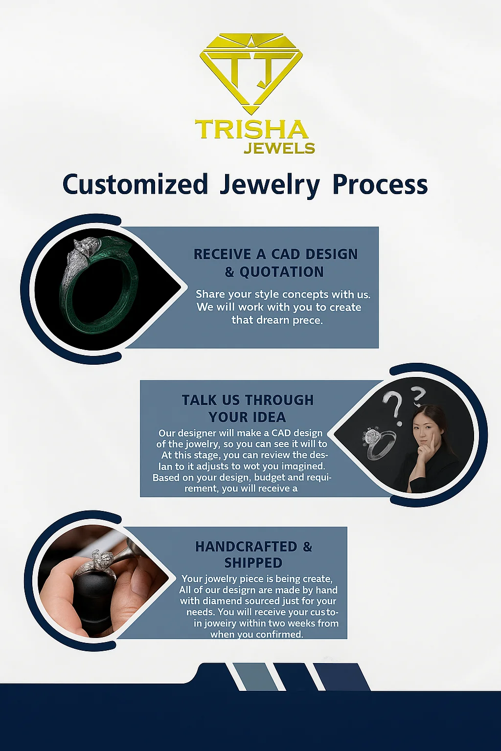 Why Choose Trisha Jewels-We blend tradition and innovation to craft premium 925 silver, moissanite, and natural gemstone jewelry. With in-house design and manufacturing, we ensure precision, customization, fast delivery, competitive pricing, and worldwide.